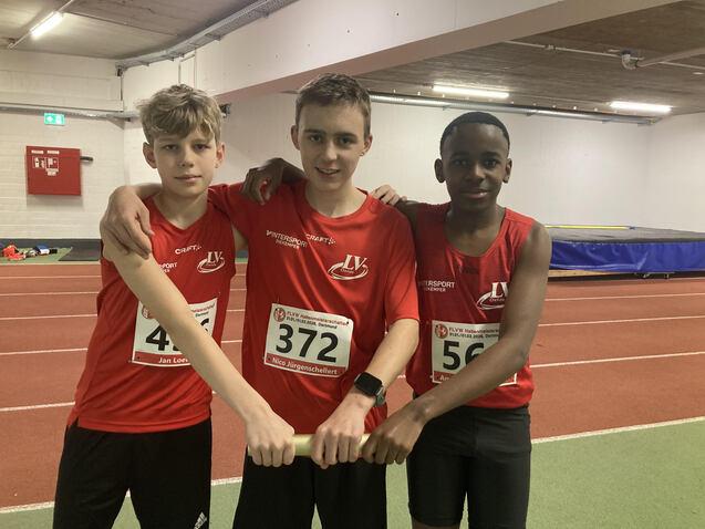 Gleich dreimal reisten die Nachwuchsathletinnen und -athleten des LV Oelde zu den Westfälischen Hallenmeisterschaften nach Dortmund. Für viele der jungen Läuferinnen und Läufer bedeutete dies, erstmals Hallenluft bei einer Meisterschaft zu schnuppern. Umso größer war die Freude darüber, dass alle gemeldeten Athleten einen Startplatz erhalten hatten. Diese sind bei Meisterschaften auf lediglich zwölf Athleten pro Jahrgang begrenzt – eine sehr geringe Zahl für ganz Westfalen. Obwohl die Vorbereitungen alles andere als optimal waren – kein geöffnetes Stadion sowie Schnee und Eis auf den Laufstrecken – konnte der LV Oelde erneut mit starken Leistungen überzeugen. Allen voran glänzte die 3x1000-Meter-Staffel mit Nico Jürgenschellert, Jan Löwen und Amadeus Nhanombe, die in 10:17,36 einen hervorragenden fünften Platz belegte. „Das war eine sehr ausgeglichene Mannschaftsleistung“, lobte Trainerin Elke Schalkamp. „Gegen die großen Vereine, die im Winter in der Halle auf der Leichtathletikbahn trainieren können, sind wir immer etwas im Rückstand. Schnelligkeitstraining war seit Mitte Dezember kaum möglich.“ Bereits am Vorwochenende war Nico Jürgenschellert über die 800 Meter im Einzel am Start. Beim Betreten der Halle noch sichtlich beeindruckt, fand er zunächst nur schwer ins Rennen. Mit einer beherzten letzten Runde lief er jedoch zu einer neuen Hallenbestzeit 2:30,38 und belegte Rang zwölf. Am Sonntag standen dann die Langstrecken auf dem Programm. Sabiha Hannemann hatte über 2000 Meter – zehn Hallenrunden – zu absolvieren und führte lange Zeit die Verfolgergruppe an. In neuer Bestzeit ( 7:42,59) erreichte sie einen starken sechsten Platz. Gleiches gelang Tim Hömberg über die 3000 Meter in 11:47,64. Bis zur 2000-Meter-Marke hielt er sich noch weit vorne im Feld, musste dann jedoch seinem Trainingsrückstand nach einer Erkältung Tribut zollen. Für Amadeus Nhanombe, den jüngeren Bruder von Topathlet Leonel Nhanombe, sprang in 11:36,90 am Ende Platz acht heraus. „Ich habe schon nach zwei Runden gemerkt, dass die Beine vom Vortag noch schwer waren“, erklärte er, kämpfte sich jedoch tapfer durch alle 15 Runden. Alle Athletinnen und Athleten des LV Oelde wurden mit einer Urkunde ausgezeichnet – diese gibt es bei Meisterschaften nur bis Platz sechs. „Das ist mir immer besonders wichtig“, zeigte sich Trainerin Schalkamp zufrieden. Nun geht es für die U14 in die Vorbereitung auf ihre Hallenmeisterschaften Anfang März in Paderborn. Alle anderen Athleten starten in die Vorbereitung auf die Freiluftsaison.