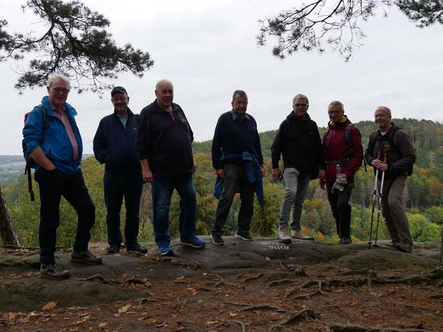 Ziel der Herbstwanderung des Fördervereins des LV Oelde am 22. Oktober 2022 waren in diesem Jahr die Dörenther Klippen, eindrucksvolle Felsformationen nahe Ibbenbüren. Bizarre Sandsteinfelsen entlang schöner Waldwege in einem Naturschutzgebiet. Der berühmteste Felsen ist das "Hockende Weib", der die Wandergruppe zum Tourbeginn faszinierte.