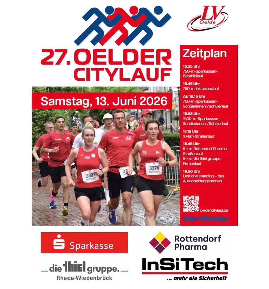 Der Oelder Citylauf 2026 ist die 27. Ausgabe und findet am 13. Juni statt.