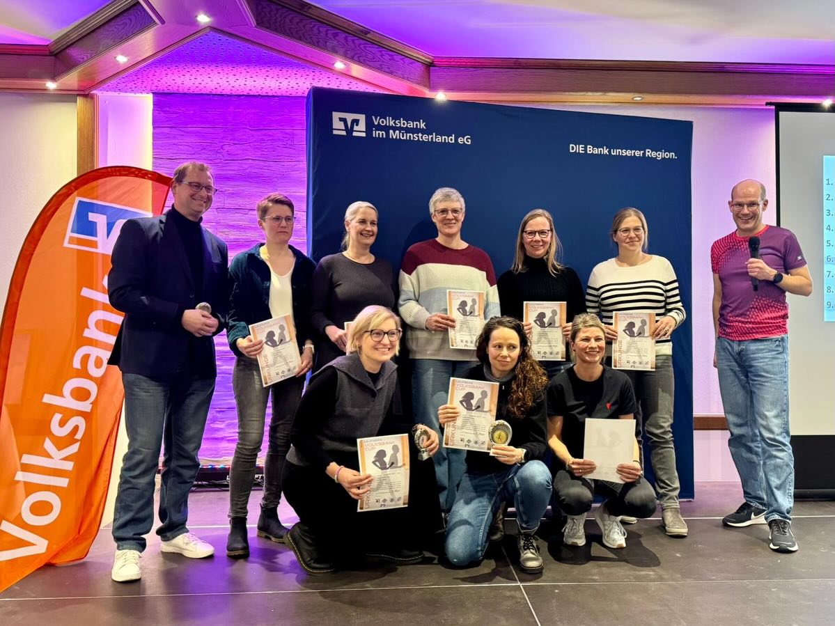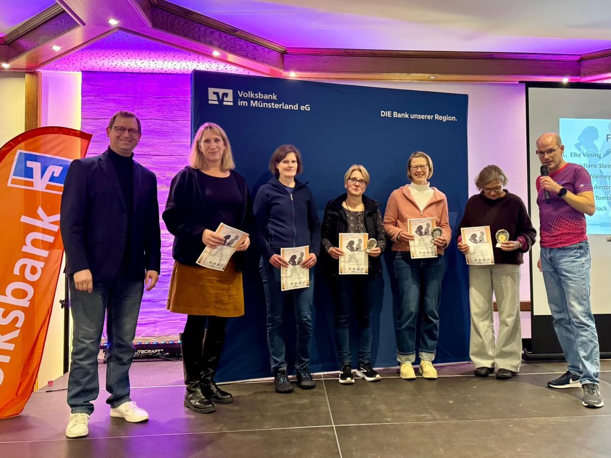 Die Abschlussfeier der Volkbank-Cup Laufserie 2025 fand im Gasthof Mersbäumer in Ostbevern statt. Alle Teilnehmende, die mindestens drei von vier Läufen der Serie absolviert haben, erhielten eine persönliche Einladung zur Abschlussfeier mit Menü, Siegerehrung und 2025er-Laufshirt. In einem feierlichen Rahmen fand die Ehrung der Gesamt- und Altersklassenplatzierten statt. Bei einem schmackhaften Menü und kurzweiligem Rahmenprogramm wurde auf die schöne Laufserie mit den Läufen in Ostbervern, Einen, Telgte und Everswinkel zurück geblickt.