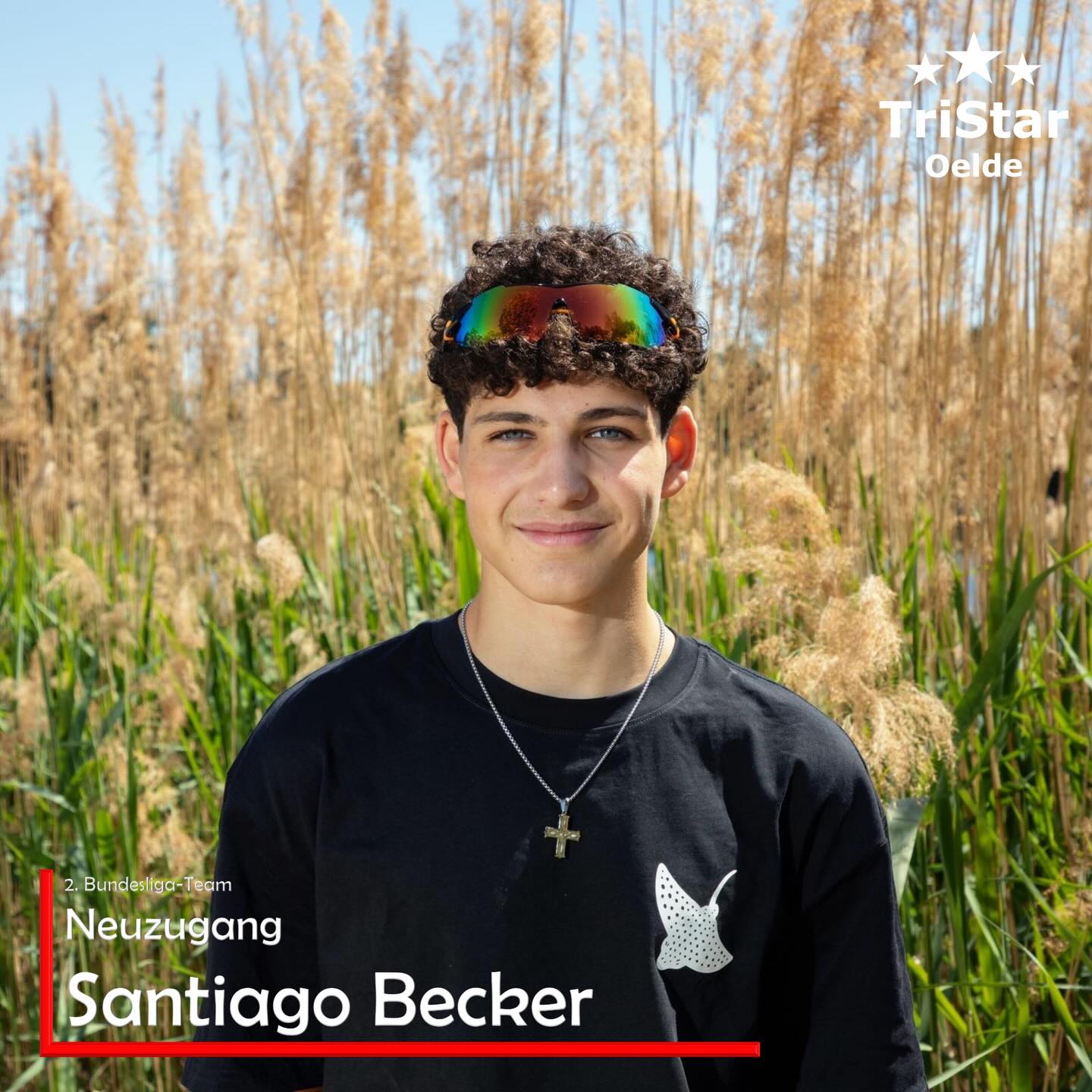 Ich bin Santiago Guzmán Becker, 17 Jahre alt und gehe in Essen auf das Internat. Ich mache seit ca. 6-7 Jahren Triathlon, davon aber erst 3 Jahre auf Leistungs orientierten Niveau. Ich freue mich riesig auf die neue Saison, da ich dort ein neues Startfeld kennen lernen darf. Abgesehen davon ist das jetzt meine erste Saison unter Oelder Flagge, was mich natürlich nochmal anspornt besonders gute Leistung zu zeigen.