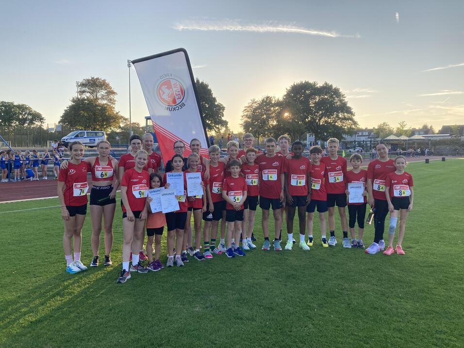 Das Highlight zum Ende einer langen Bahnsaison aus Sicht des LV Oelde bildet immer die Staffelmeisterschaft. So waren auch vergeangenen Freitag wieder viele Staffeln in ROT am Start. Es wurde gerannt, gekämpft und sich gegenseitig angefeuert.