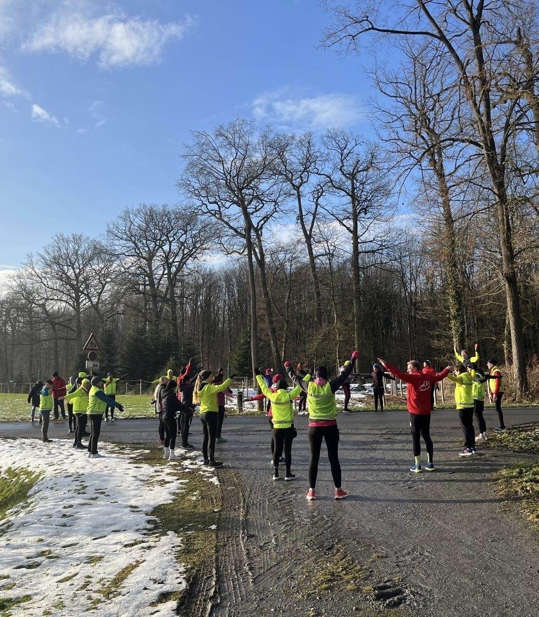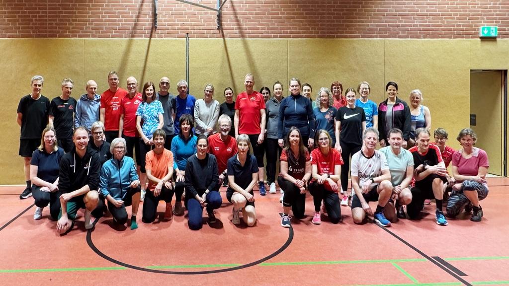 Das war ein beeindruckendes Bild! Trainingsauftakt der "Fit für 2026"-Aktion zusammen mit dem Lauftreff beim Aufwärmen bevor es in unterschiedlichen Gruppen losging.