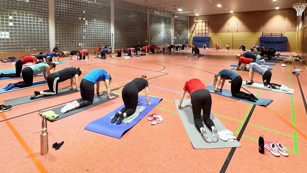 Aufwärmübungen vor dem Lauf und Dehnübungen nach dem Lauf standen bei dem Termin am 16. März 2026 mit dem Gesundheitszentrum Brinkhaus im Vordergrund.