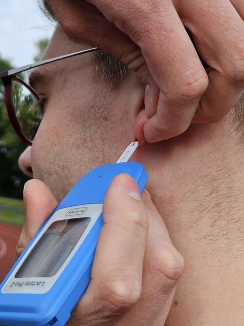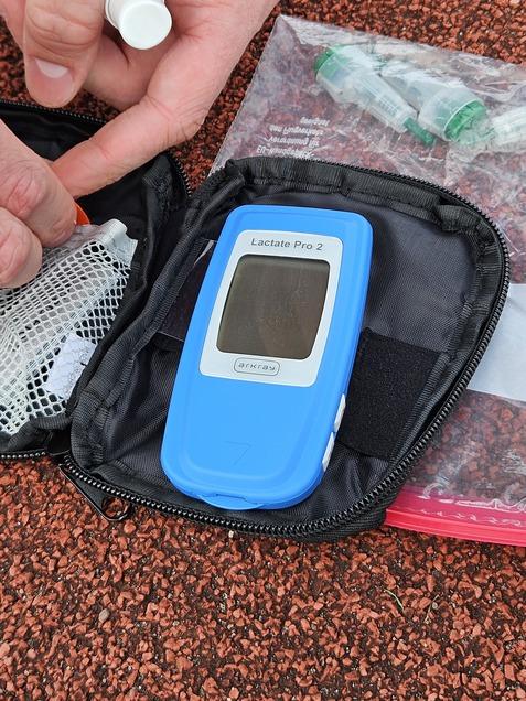 Ihr werdet mehrere längere Intervalle in unterschiedlichen Geschwindigkeiten und mit wenig Pause absolvieren. Am Ende eines jeden Intervalls nehme ich einen Tropfen Blut aus dem Ohrläppchen ab und ermittele den Laktatwert. Im Anschluss werte ich die Ergebnisse aus und teile euch eure empfohlenen Trainingsgeschwindigkeiten mit.